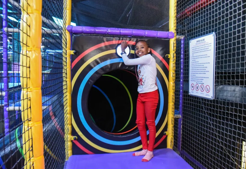 Step into the action-packed Tag Arena, where adventure meets friendly competition! This dynamic play space features exciting obstacles, including tube slides, a thrilling tower slide, and a crawl net tunnel.